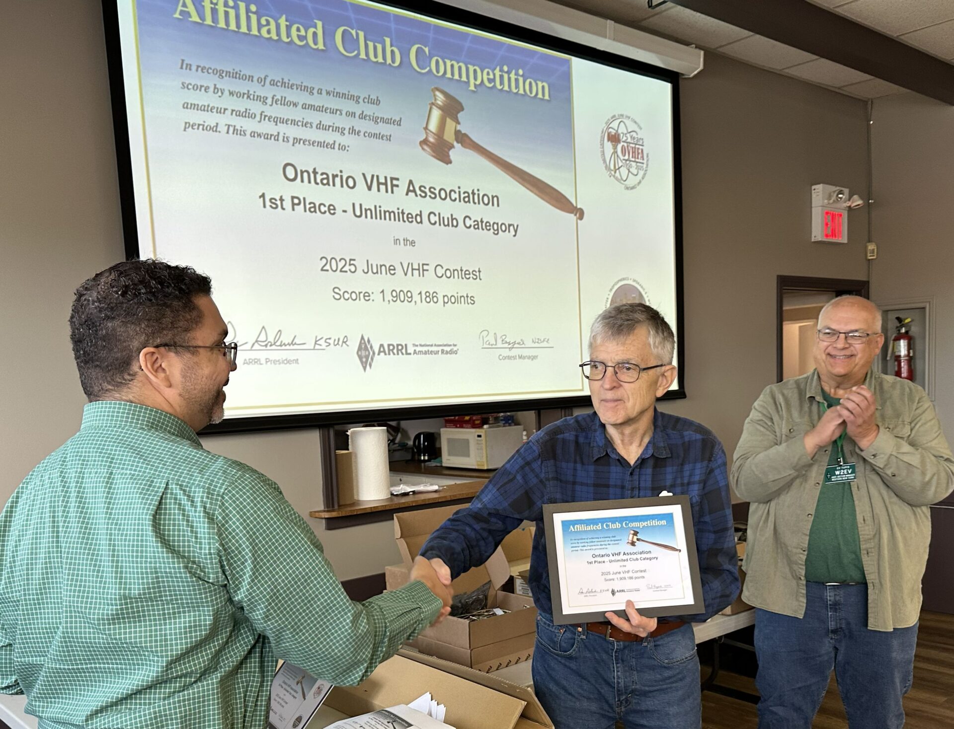- Dana, VE3DS, received the ARRL club award and the "Stanley Cup" on behalf of the 66 participant who helped OVHFA win the June 2025 VHF contest.